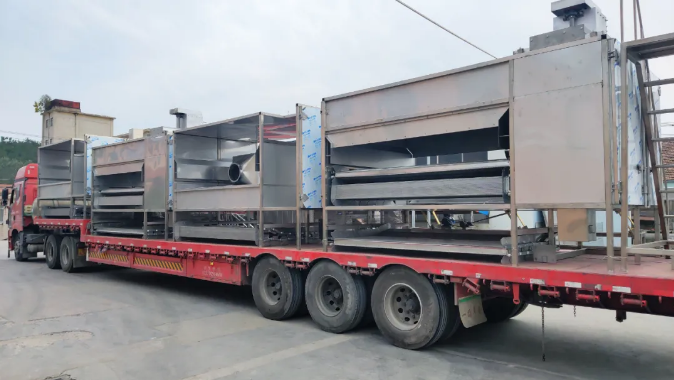 10月發(fā)貨的設備主要有:堅果深加工生產線、裹衣裹粉設備、淺粉烘烤生產線、花生油炸組合、蠶豆生產線等??蛻舾采w到華北、東北、華中、華南等地區(qū),11月我們也將不負眾望,按期交貨。